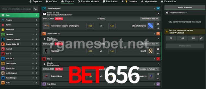O bet656 oferece uma grande seleção de opções de apostas em e-sports com probabilidades competitivas